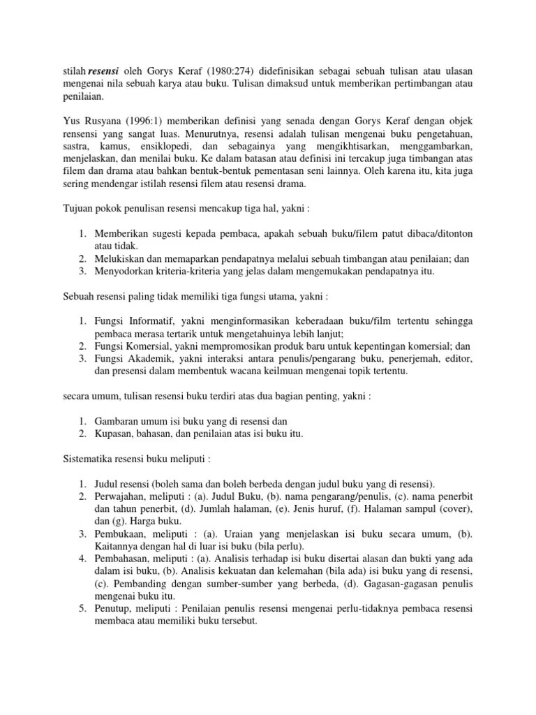 contoh soal ukk/pat kelas 7 semester 2 (genap) bahasa indonesia kurikulum 2013. resensi adalah suatu tulisan atau ulasan mengenai nilai sebuah hasil karya, baik itu buku, novel, majalah, komik, film, kaset, cd, vcd, maupun dvd. Yang arti harfiahnya melihat kembali. 4 contoh resensi film hafalan sholat delisa. Berikut ini contoh soal resensi.lihat juga: paragraf resensi yang tepat berdasarkan data buku tersebut ialah. Penilaian karya tersebut berdasarkan keunggulan atau kelemahannya. Pengertian resensi menurut para ahli. Di pontianak, banyak sekali keunikan dan tempat menarik yang merupakan ciri khas kota pontianak. Kumpulan soal pilihan ganda bahasa indonesia kelas 9. Saryono (1997:56) resensi merupakan sebuah tulisan berupa esai juga bukan merupakan bagian sebuah ulasan yang lebih besar mengenai sebuah buku. Keceriaan dan canda tawa tercurah di sana. *** demikian paparan singkat, padat, dan lengkap mengenai berbagai contoh teks ulasan.