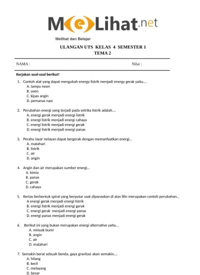 Soal penilaian harian (ph) tema 2 selalu berhemat energi subtema 1 sumber energi kelas 4. Sekian gosip untuk soal uts kelas 4 sd tema . Penilaian tengah semester (pts) biasanya diterapkan oleh lembaga yang telah ditunjuk oleh penyelenggara . Silahkan sahabat unduh file ini dalam bentuk format doc, biar gampang dicetak dan gampang diedit apabila diperlukan. Rpp kurikulum 2013 sd kelas 4 revisi tema 2 selalu berhemat energi. Buku tugas dan latihan soal tematik sd kelas 4 tema 2 selalu berhemat energi. Buku tugas dan ulangan ini disusun berdasarkan kurikulum 2013 revisi 2017. Berdasarkan datadikdasmen, tema kelas 4 kurikulum 2013 adalah indahnya kebersamaan hingga kayanya negeriku. Yang terdiri dari muatan soal ppkn, bahasa indonesia, ips, ipa,. Latihan soal ulangan kelas 4 sd tema 2 subtema 2 semester 1 kurikulum 2013 tersebut bermanfaat untuk mengasah keterampilan peserta didik dalam mengerjakan . Selalu berhemat energi hari/tanggal : Rpp pembelajaran tematik kelas iv sd selalu berhemat energifull description. Website berisi latihan soal tematik kurikulum 2013, soal tema, soal subtema, soal ktsp, soal uas dan uts, soal pas dan pts, download latihan .